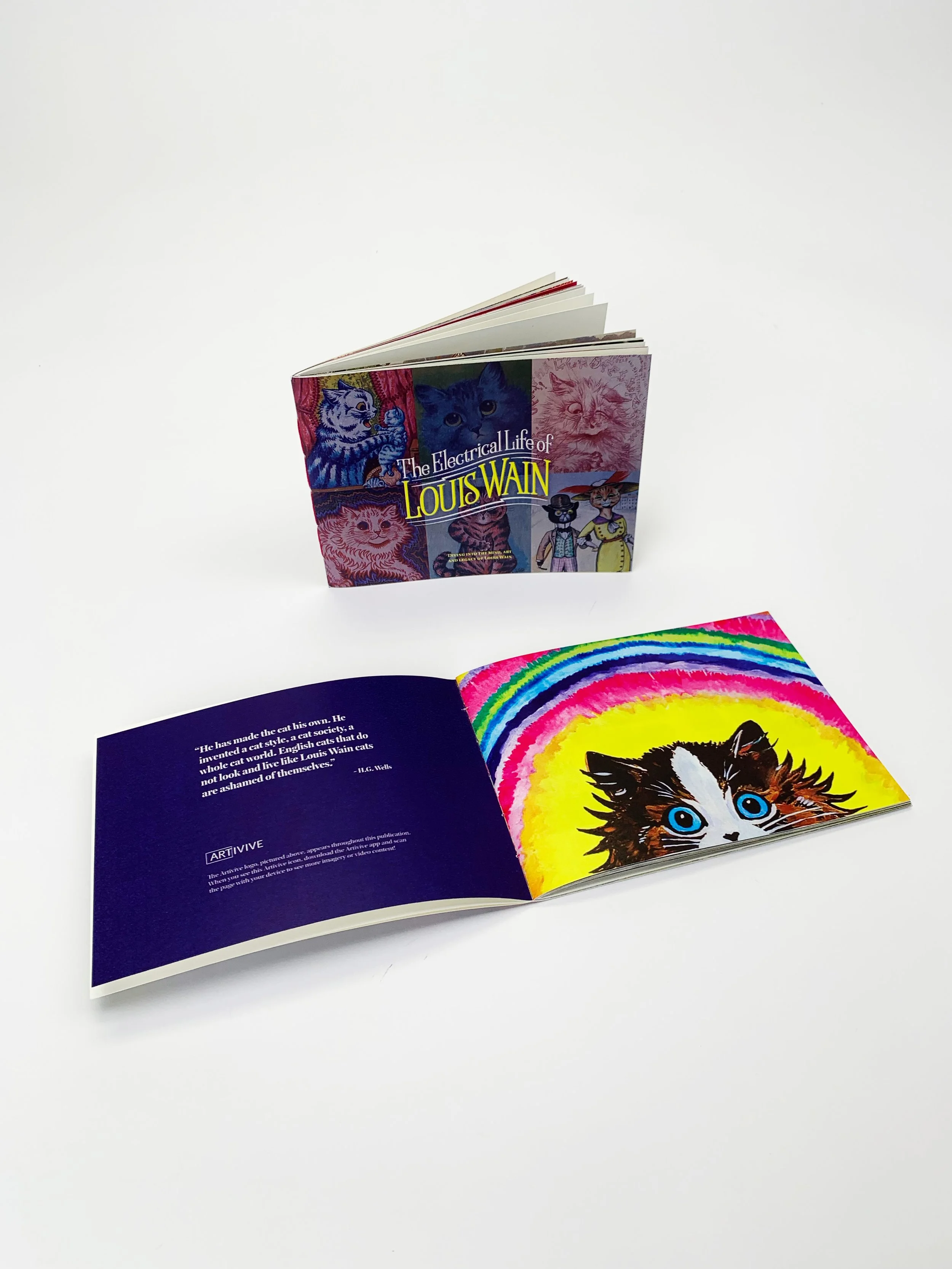 The publication has four animated spreads and each one is noted by the Artivive logo. The animations act as a way to enhance the content of the publication, by showing more examples of Louis Wain’s artwork and playing the trailer and a clip from the film.
