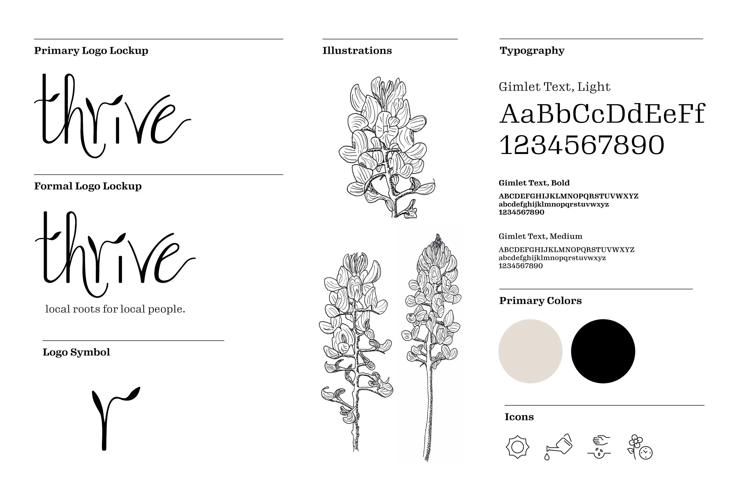 Both the logo and flower illustrations work well together to convey a handmade feel for the thrive brand and products.